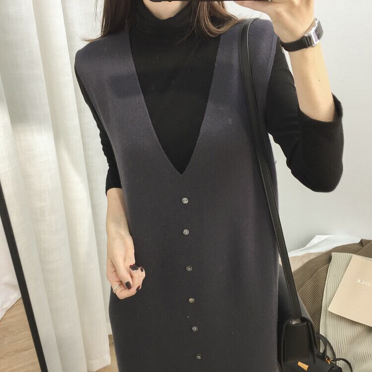【送料無料】 ワンピ―ス ワンピ ミディ丈 Vネック オーバーオール ノースリーブ ベストワンピ 秋冬 ブラック アプリコット ブラウン ベージュ ブルー ゆったり 着痩せ お洒落 可愛い カジュアル 大人カジュアル お呼ばれ デート 女子会 通勤 韓国 オルチャン OP-024KB
