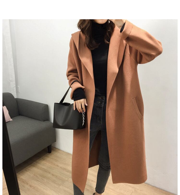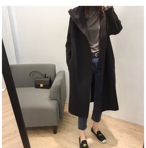 【送料無料】 アウター 秋冬 ロング コート チェスター フード付き ニット コーディガン キャラメル アプリコット ピンク ブラック ゆったり 着痩せ お洒落 トレンド 大人カジュアル 上品 きれい目 お呼ばれ デート 女子会 通勤 韓国 オルチャン OT-005KB