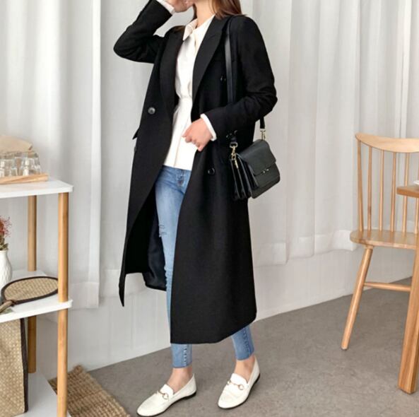【送料無料】 アウター 秋冬 コート トレンチ ダブルブレスト ミディ丈 ジャッケト 学生風 薄手 ブラック ピンク ベージュ スリム 着回し お洒落 トレンド 可愛い 大人カジュアル 上品 きれい目 お呼ばれ 二次会 デート 女子会 通勤 韓国 オルチャン OT-006KB