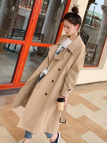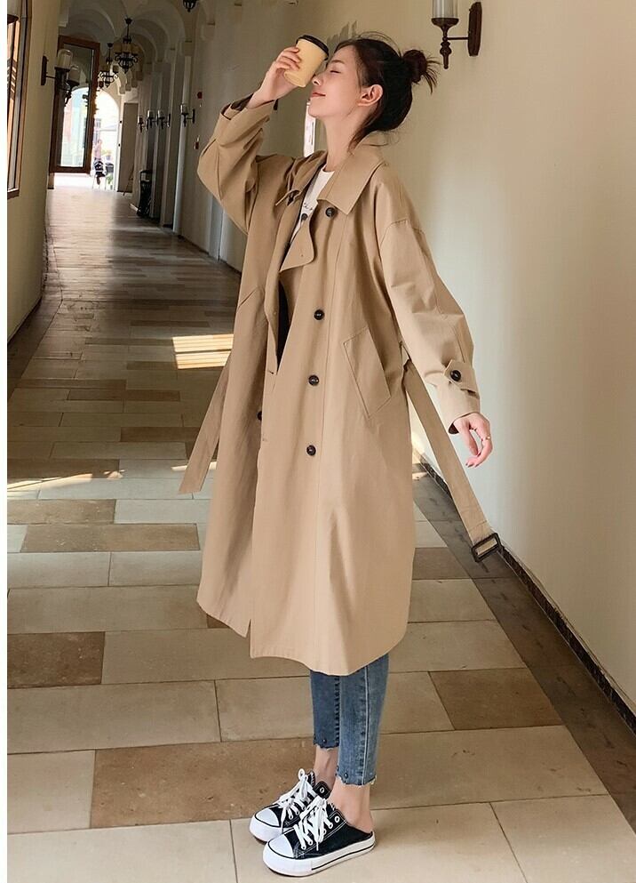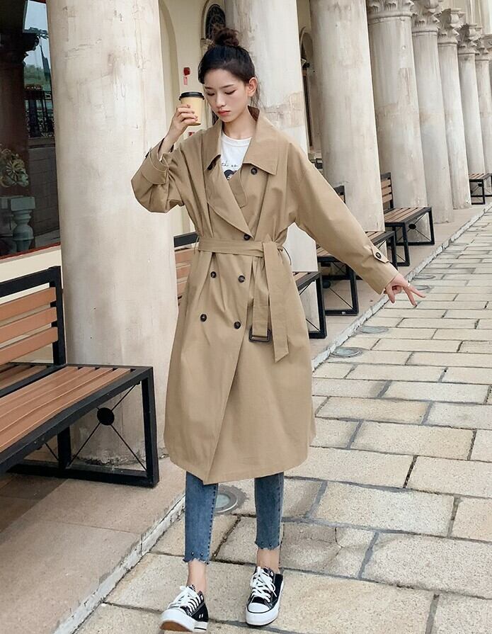 【送料無料】 アウター トレンチコート コート トレンチ ベルト付き ミディ丈 秋 春 クラシック ダブルブレスト ベージュ ブラック ゆったり お洒落 トレンド 可愛い 大人カジュアル デート 女子会 通勤 韓国 オルチャン OT-008KB