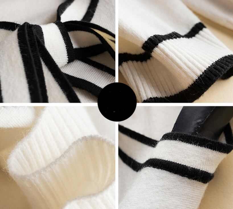 【送料無料】 3カラー エレガント 縁取りリボン ウール ニット セーター 長袖 上品 フェミニン スリムフィット お嬢様スタイル ホワイト ブラック グレー オフィス 通勤 通学 レジャー 普段使い シティー デート 女子会 お出かけ デイリー TP-097KW