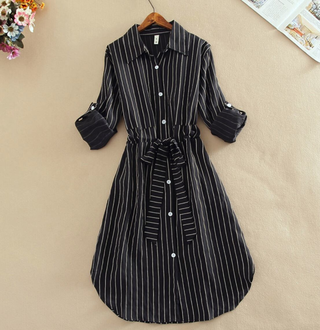 【送料無料】 ロング シャツワンピ スカート カジュアル コットン リネン 膝上 ストライプシャツOP-003MM