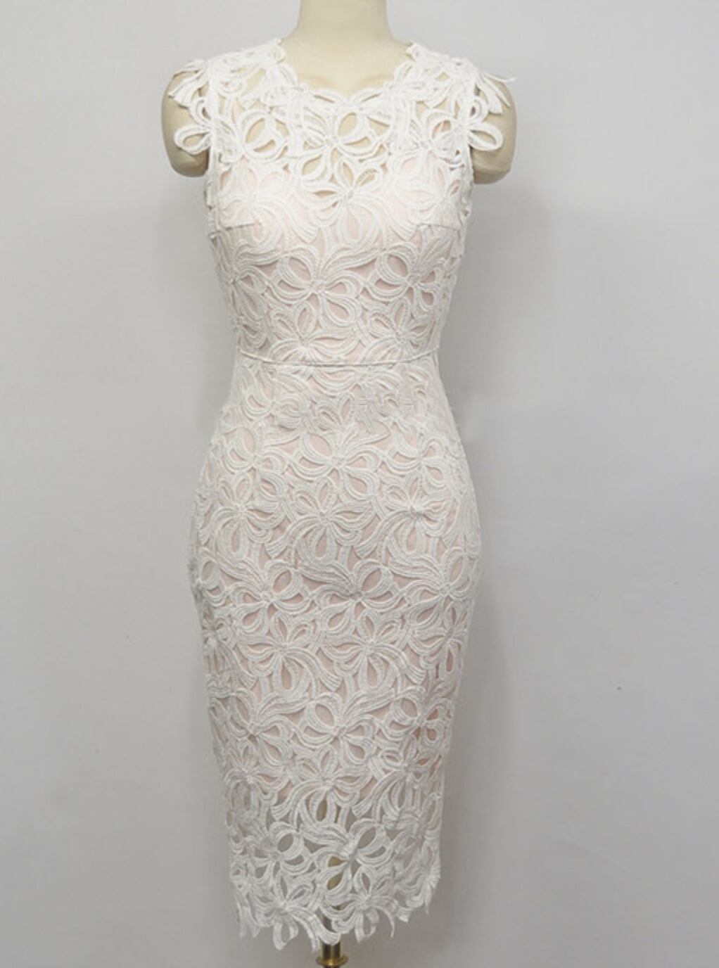 【送料無料】 ノースリーブ レース ワンピース フィット ラウンドネック タイト 上品 デート OP-012MM