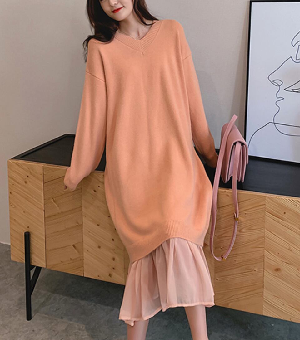【送料無料】 秋冬 ニット 異素材ミックス ワンピース 長袖 デート 女子会 OP-013MM