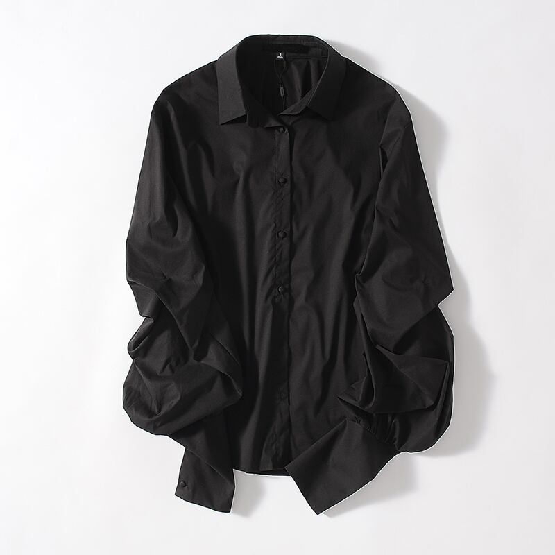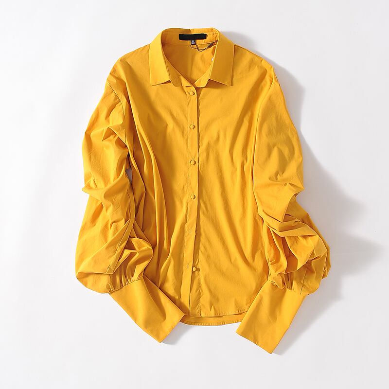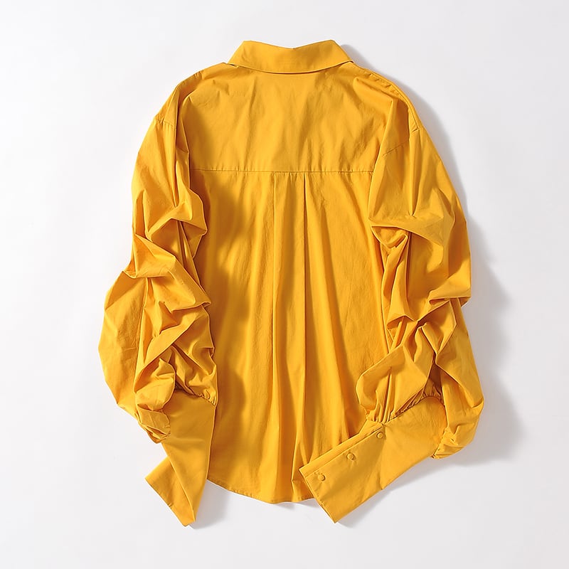 【送料無料】 トップス 秋冬 カットソー シャツ ブラウス ランタンスリーブ 袖ボリューム 無地 長袖 ホワイト イエロー ブラック ゆったり 着回し お洒落 トレンド 大人カジュアル 上品 きれい目 通勤 韓国 オルチャン TP-0031KB