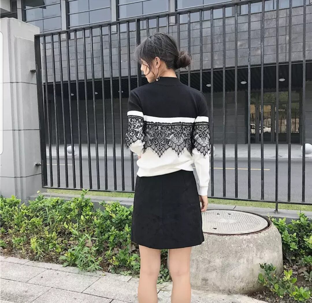 【送料無料】 エレガント 派手 ギャル系 レース ハーフハイラウンドネック セーター 秋冬 長袖 TP-026MG