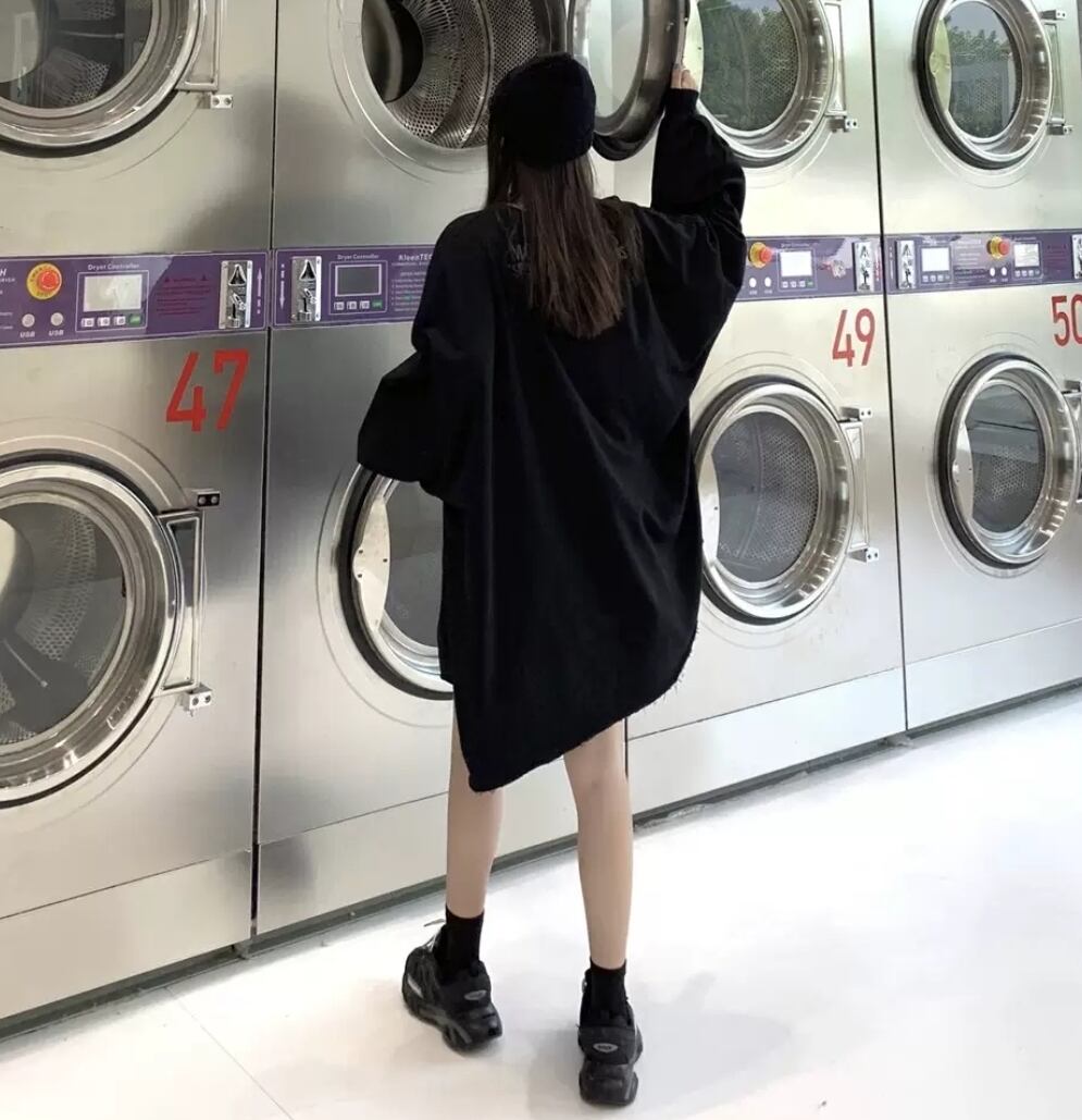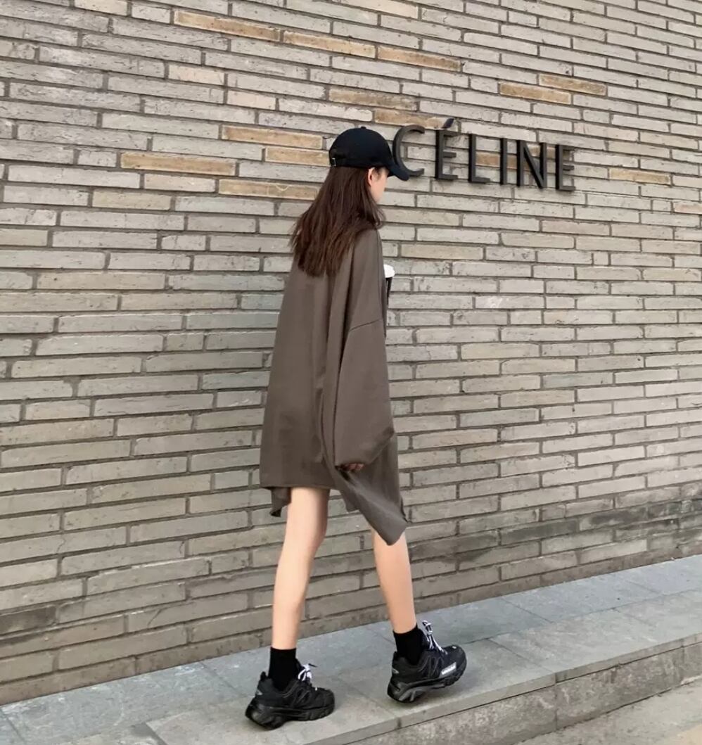 シンプルなビッグシルエットのロングトップス♪ロングタイプで1枚でワンピースとしても着用可能♪無地なので色々なコーデに合わせやすい¨̮♡