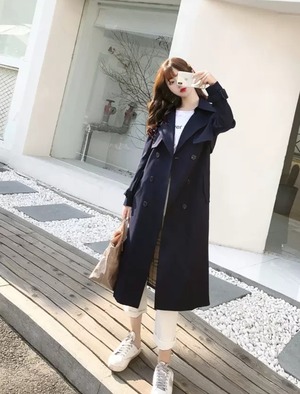 【送料無料】 きれいめ 無地 ウィンドブレーカー ロングコート トレンチコート ダブルブレスト 秋冬春 OT-012MG
