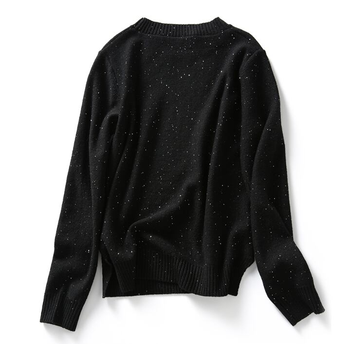 【送料無料】 きらきら☆スパンコール カシミヤ入りウール100% ブラックセーター ラウンドネック 長袖 トップス 秋冬 OL 通勤 通学 カジュアル デイリー 普段使い シティー デート お呼ばれ パーティー 二次会 TP-106KW