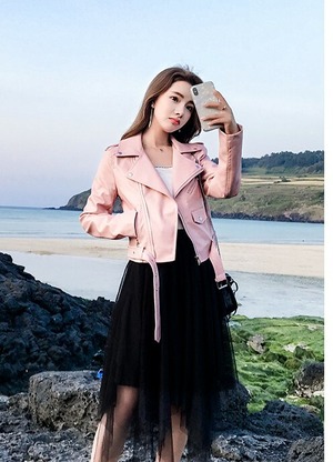 【送料無料】 アウター 秋冬 ライダース ダブル フィットサイズ クール ショート丈レザー フェイクレザー ブラック ピンク ボルドー イエロー スリム 着痩せ 足長 着回し お洒落 トレンド カジュアル 大人カジュアル 韓国 オルチャン OT-020KB