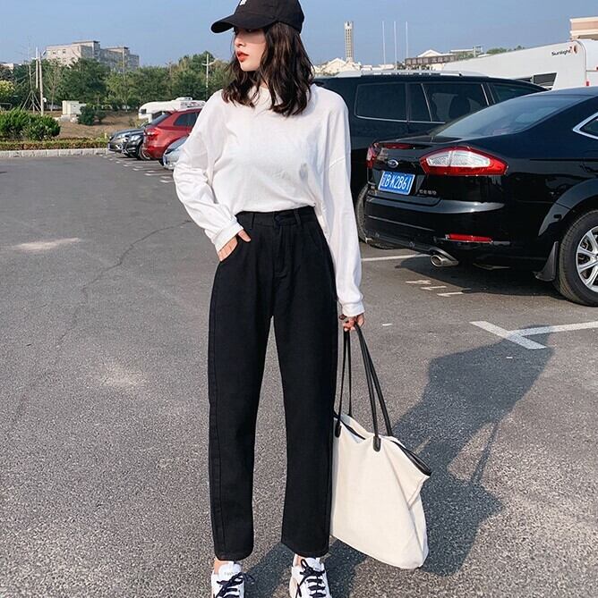 【送料無料】 パンツ ハイウエスト デニム デニムパンツ 細身 ブラック スポーティ メンズライク 古着 大きいサイズ 大きめサイズ シンプル BM-051KJ