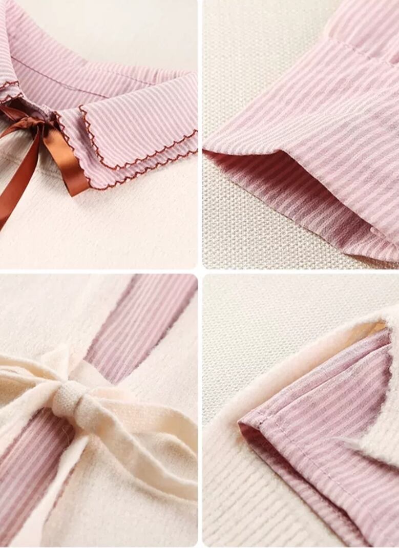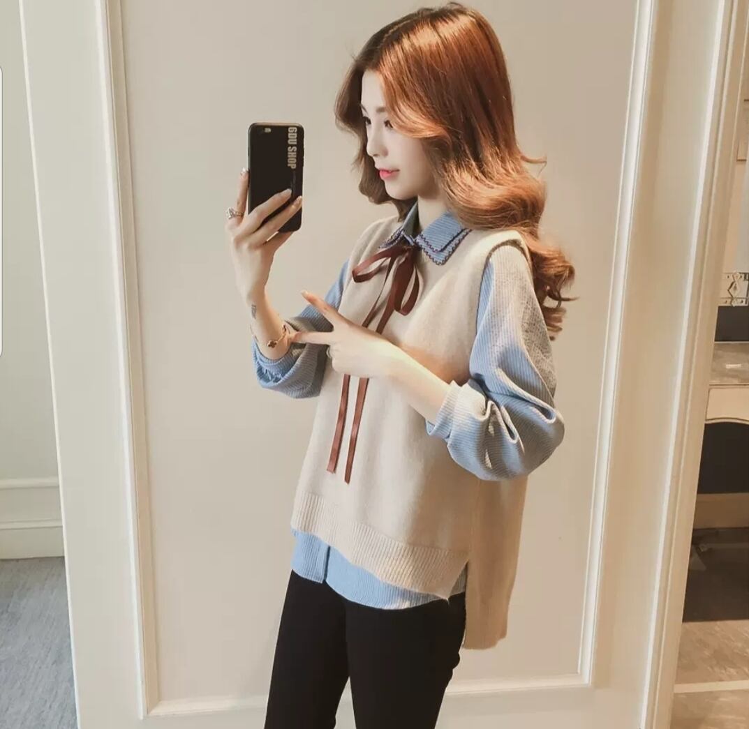 森ガール風なゆったりなトップス2点セット♪ブラウス長袖シャツにあったかいふわふわベストがセットでとても可愛らしいアイテム♪リボンも付いておしゃれに¨̮⑅* 着るだけで優しい雰囲気に変わります◎
