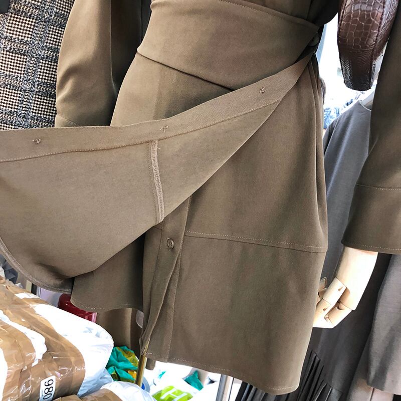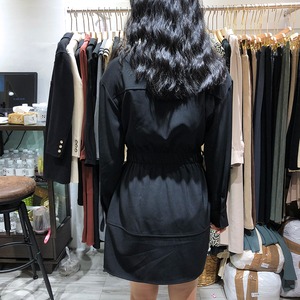 【送料無料】 ワンピース ミニワンピース ミニ丈 ブラウン ブラック タイトスカート ハイウエスト 襟 アシンメトリー 大人 かっこいい デート OP-059KJ