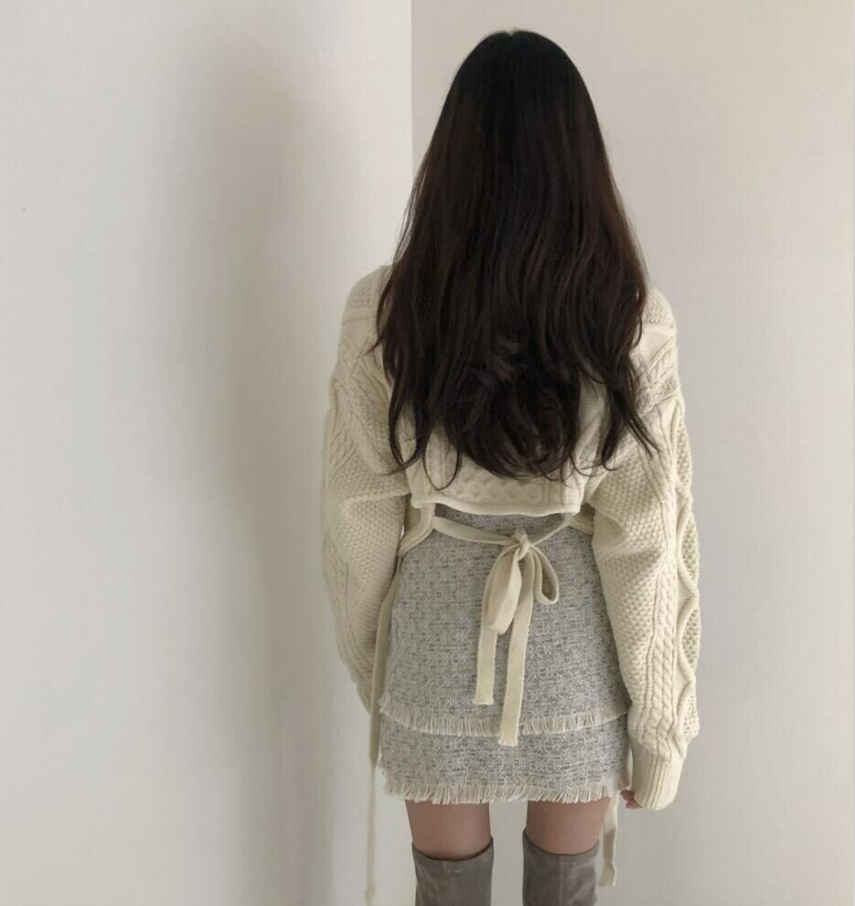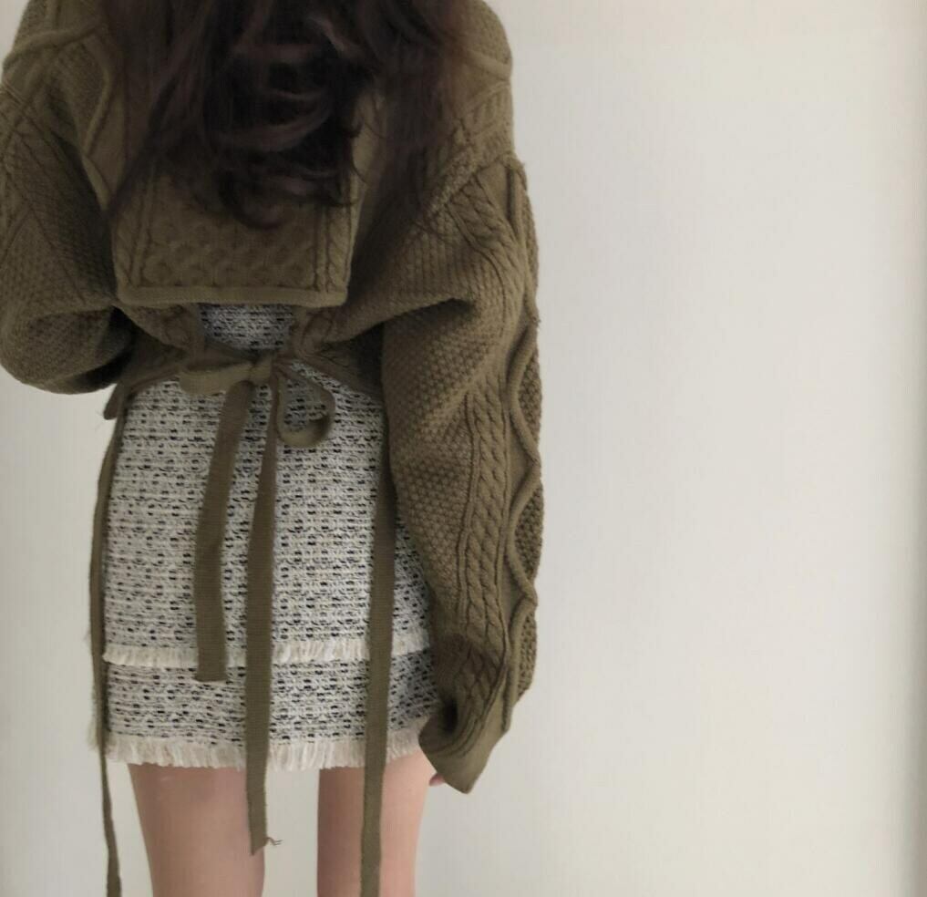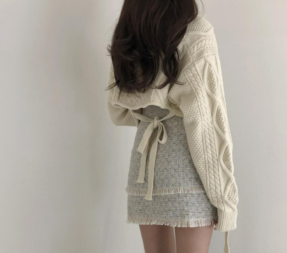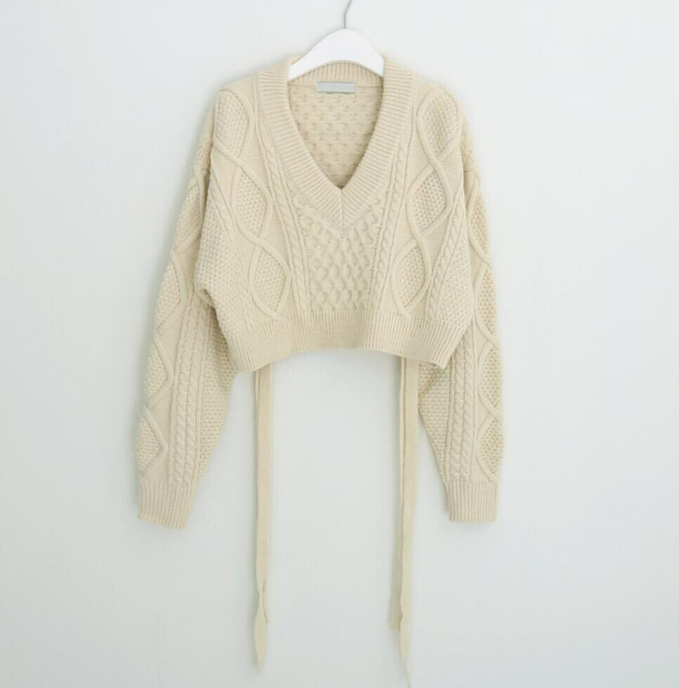 【送料無料】 トップス 秋冬 ケーブルニット ニット セーター 長袖 厚手 リボン ショート丈 ブラック ネイビー ベージュ カーキ ゆったり 着痩せ 足長 着回し お洒落 トレンド 可愛い セクシー デート 通勤 韓国 オルチャン TP-037KB