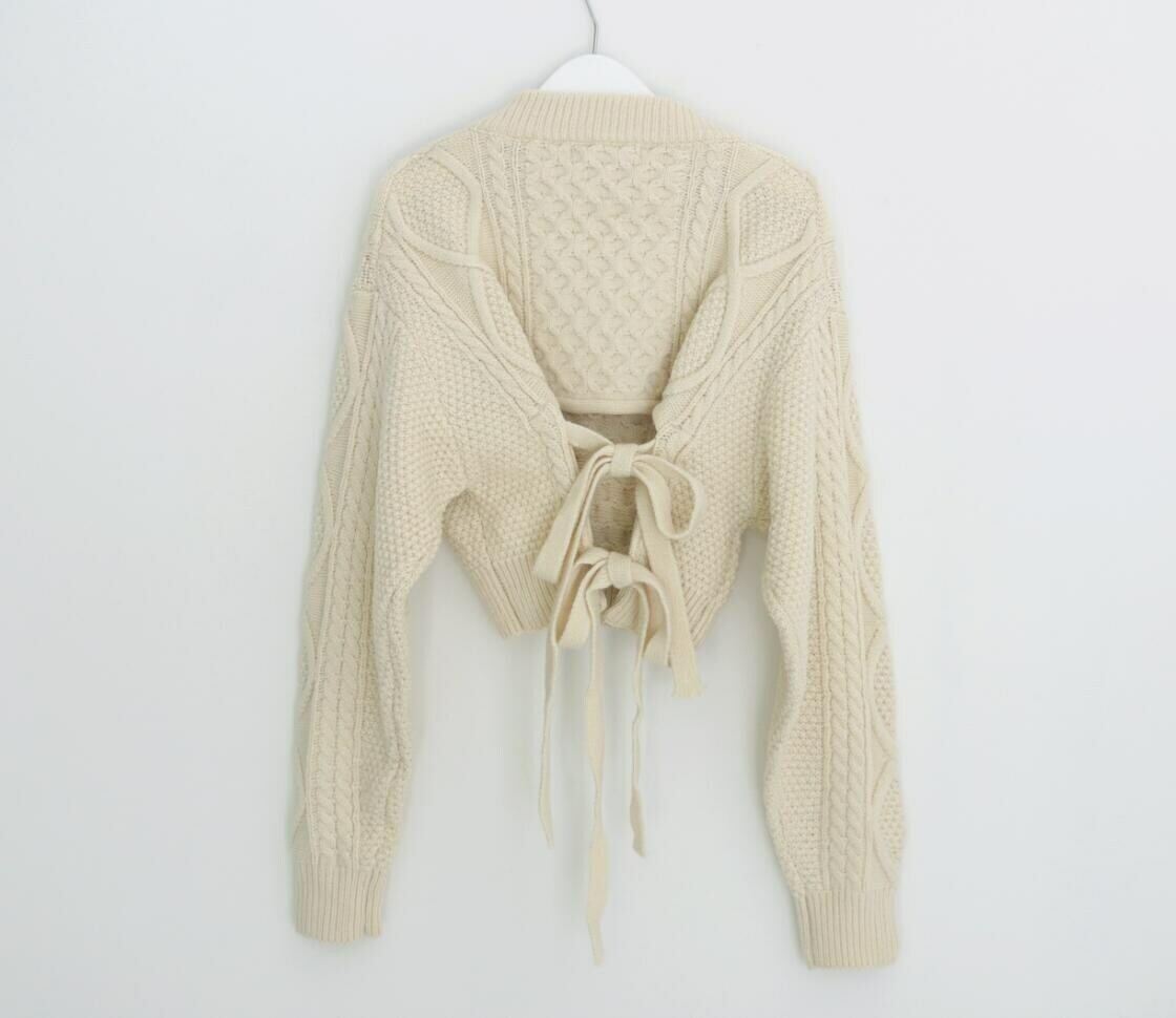 ショート丈でバックリボンが個性的なおしゃれなセーターになっています♪