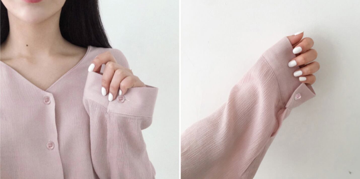 【送料無料】 レディース Vネック シフォン トップス インナー 無地 シンプル フェミニン 上品 ピンク 長袖 通勤 OL お出かけ デート 女子会 TP-048MM