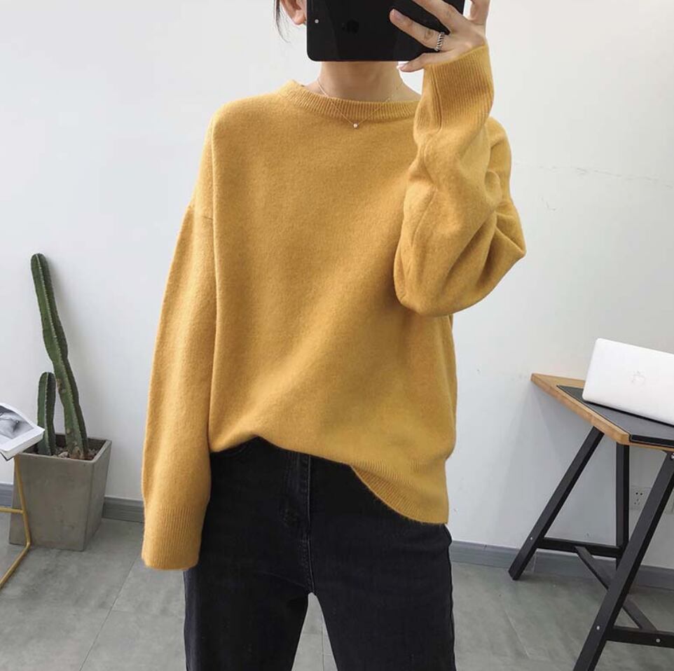 【送料無料】 シンプル キレイ色 ラウンドネック レディース 秋冬 トレンド 着まわし ニット ゆったり 無地 シンプル 長袖 通勤 カジュアル お出かけ デート TP-050MM