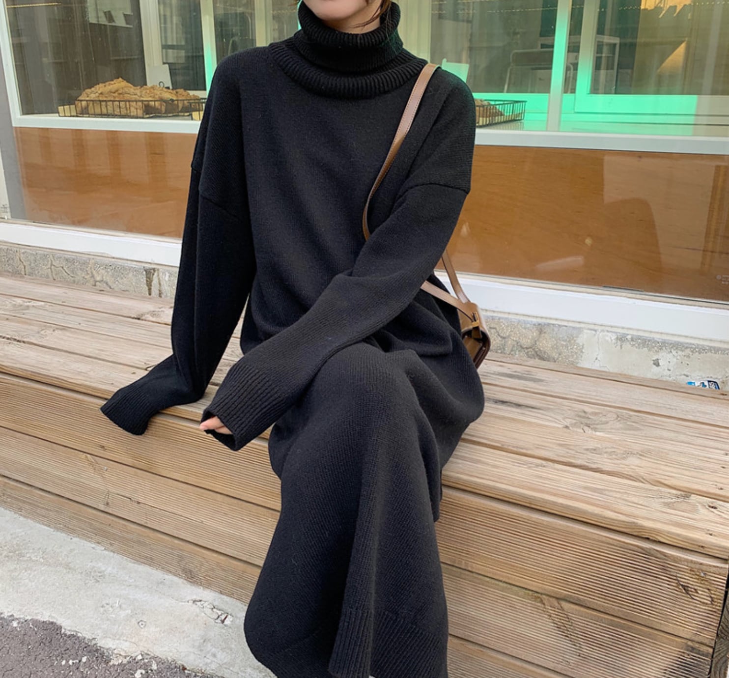 両サイド入ったスリットとひざが隠れる丈感が新鮮なロングニットワンピースです。