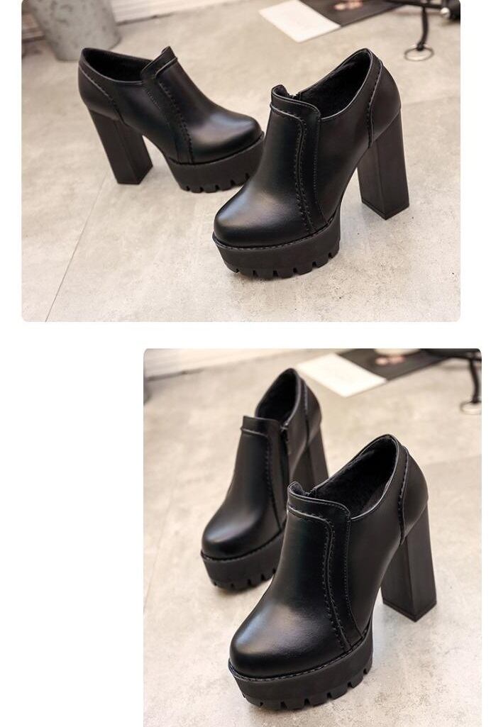 【送料無料】 厚底 ブーティ ハイヒール 11cm チャンキーヒール アンクルブーツ アーモンドトゥ ショートブーツ 脚長効果 美脚 ジップアップ 厚底ブーツ ブラック 黒 PUレザー シンプル お洒落 カジュアル きれいめ 秋 冬 FW-040HM