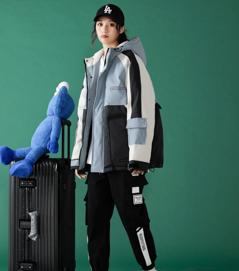 【送料無料】 カラフルオシャレ♪フード付機能的パーカー コットンスタッフドジャケット ラグラン袖 アウトドア ビッグポケット スタイリッシュ 長袖 無地 シンプル アウター 秋冬 ピンク ブルー 全2色 デイリー 通学 旅行 レジャー お出かけ 普段使い OT-071KW