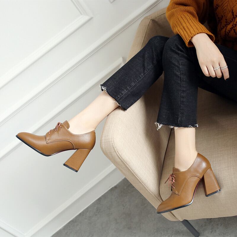 【送料無料】 3カラー 厚底ブーティー ショートブーツ レースアップ 8cm チャンキーヒール アンクルブーツ アーモンドトゥ ポインテッドトゥ 歩きやすい 脚長効果 美脚 厚底ブーツ ブラック 黒 ブラウン 茶 レッド 赤 PUレザー シンプル 大人カジュアル お洒落 秋 冬 小さいサイズ 大きいサイズ 通勤 通学 普段使い FW-043HM