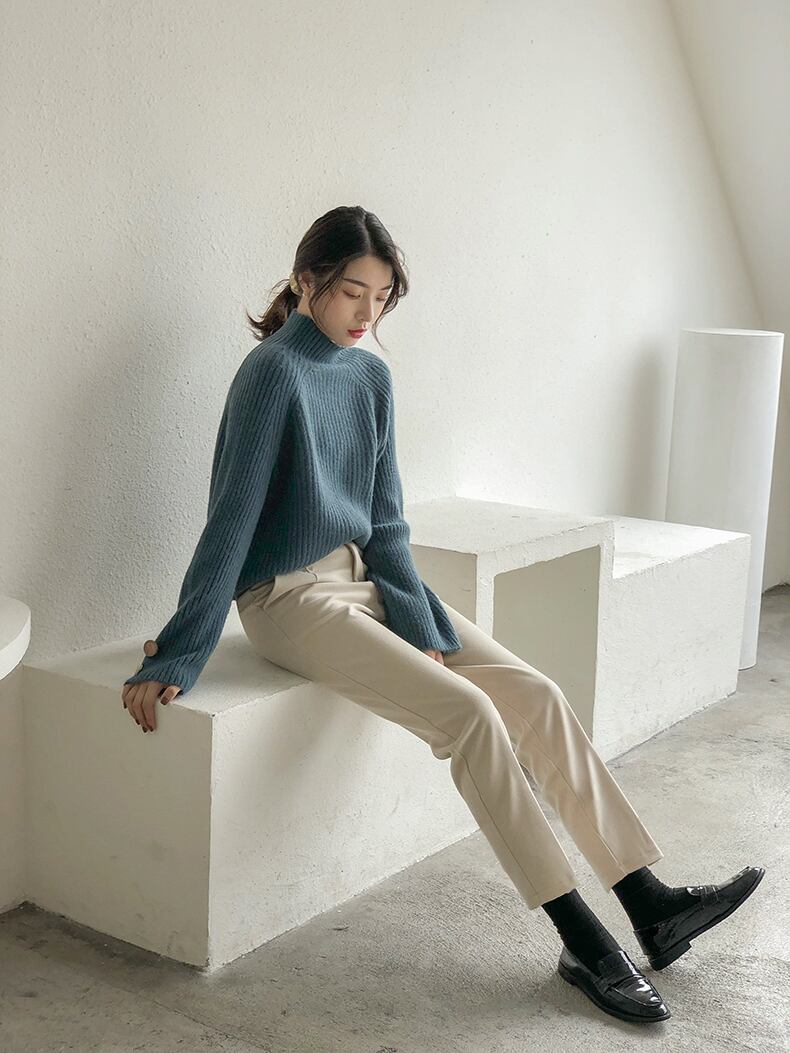 秋冬カラーなハイネックニット。
