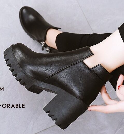 【送料無料】 2カラー 厚底ブーティー チャンキーヒール 6mヒール ショートブーツ アンクルブーツ アーモンドトゥ ポインテッドトゥ サイドジッパー らくちん 歩きやすい 脚長効果 美脚 厚底ブーツ ブラック 黒 ブラウン 茶 PUレザー シンプル 普段使い おしゃれ かわいい お洒落 秋 冬 FW-051HM