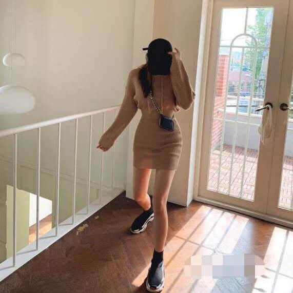シンプルなワンカラーでオシャレなニットワンピース。