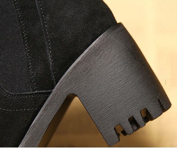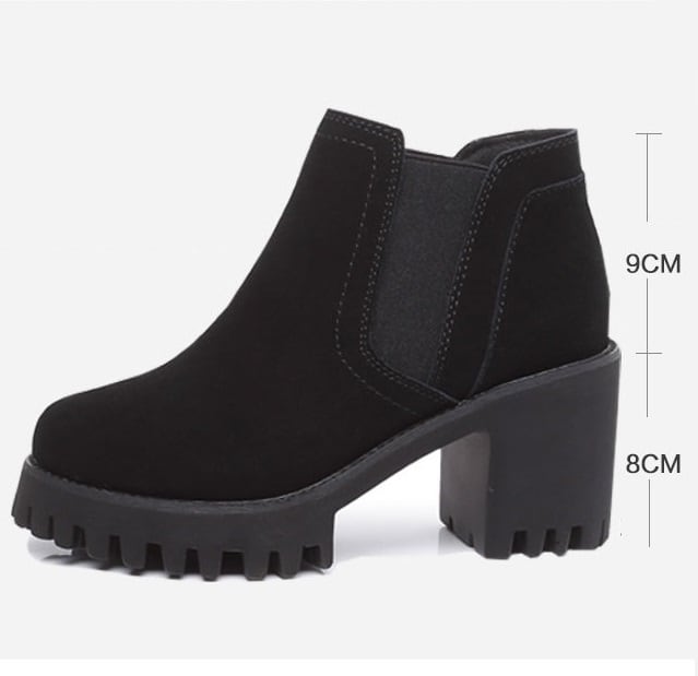 【送料無料】 スエード ゴアブーツ チャンキーヒール 厚底 ブーティ ショートブーツ 8cmヒール アンクルブーツ 裏起毛あり 裏起毛なし あったか アーモンドトゥ 脚長効果 美脚 歩きやすい らくちん 厚底ブーツ ハイヒール ブラック 黒 ブラウン 茶 シンプル お洒落 カジュアル デイリー 通勤 通学 秋 冬 FW-062HM
