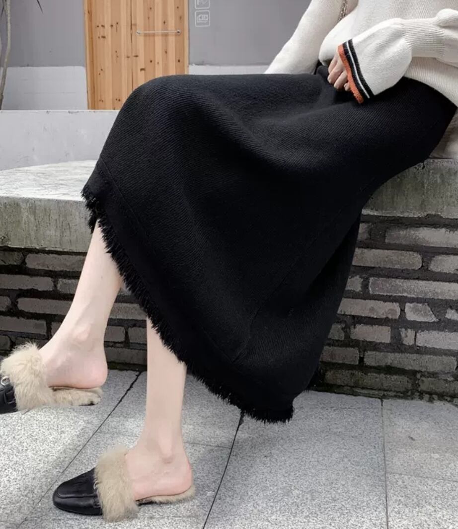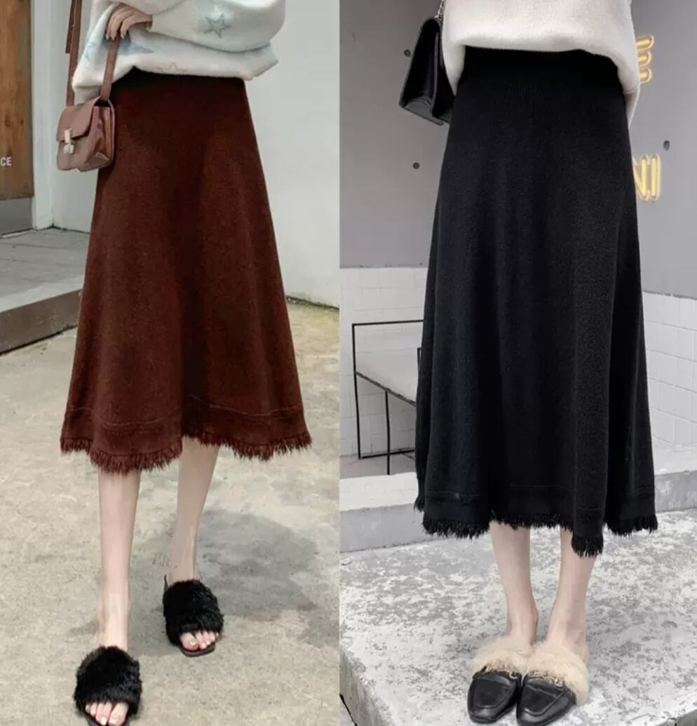 【送料無料】 全3色 ざっくりニット ふわふわ 柔らか素材 無地 シンプル アジアン風 フレアスカート ミディ丈 秋冬 ゆったり SK-018MG