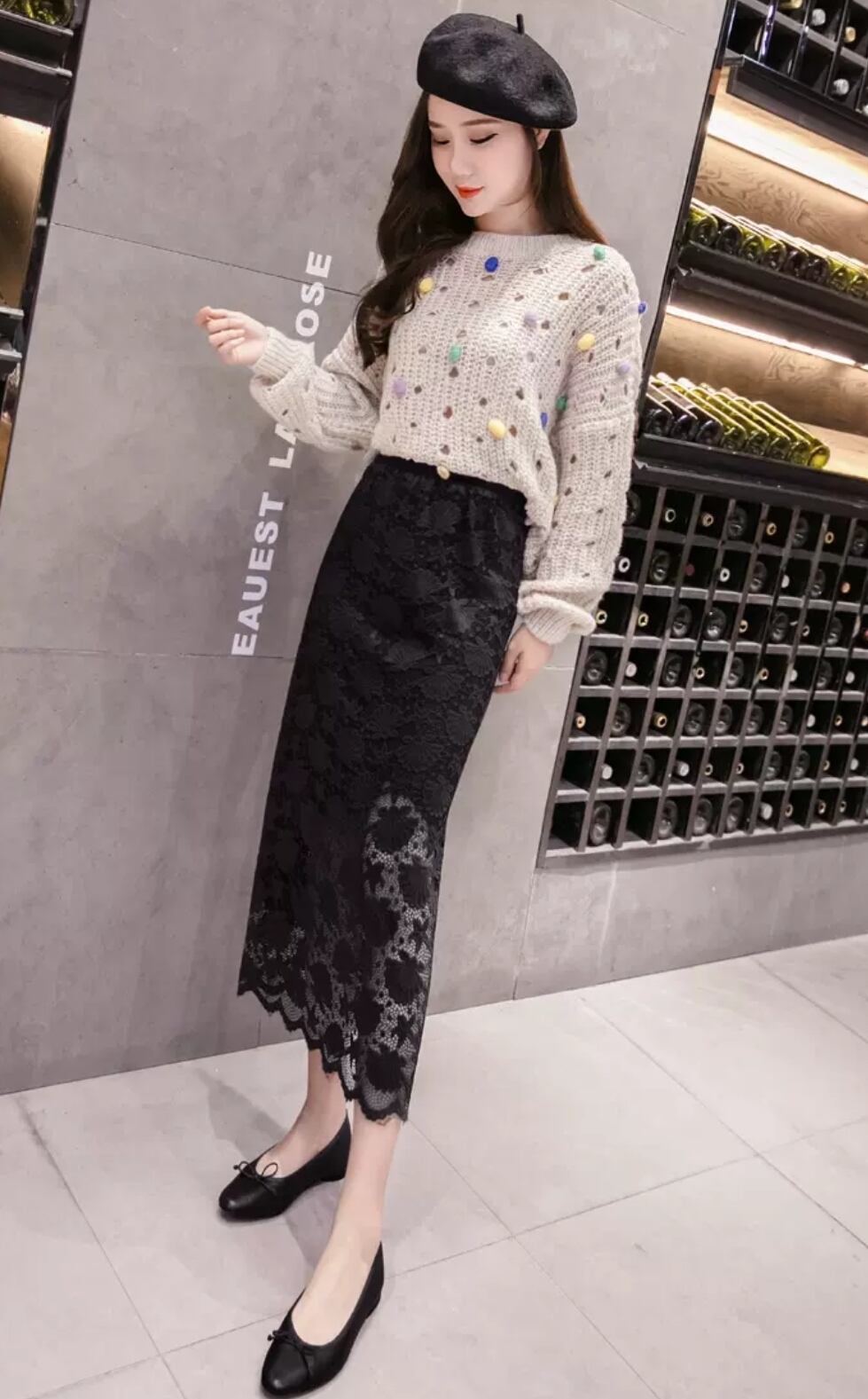 ニット生地とレースの2スタイルに変えられるリバーシブルタイプのタイトスカート⸜♡⸝