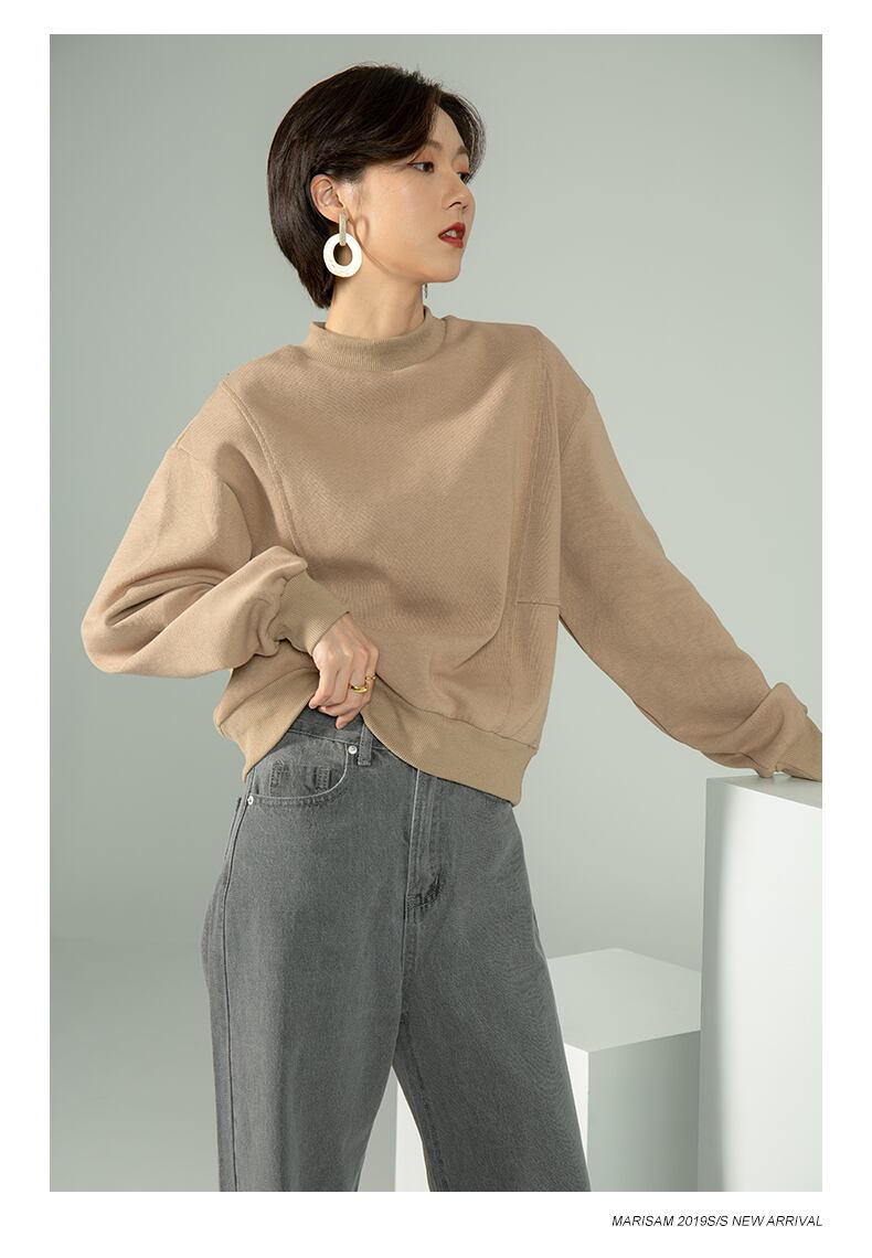 【送料無料】 トレーナー スウェット ラウンドネック ハイネック 無地 ワンカラー シンプル カーキ 秋冬 着回し 大人 きれいめ カジュアル オフィス 通勤 デート TP-119KJ