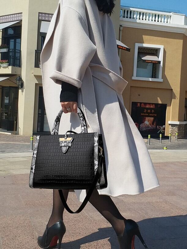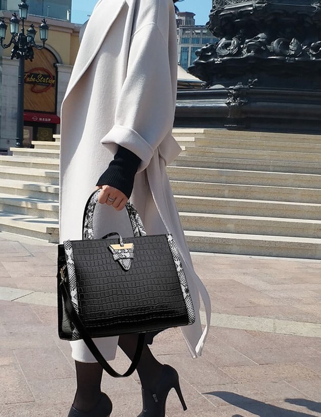 【送料無料】 ハンドバッグ 大きめ ビジネス A4 トート ショルダー OL メッセンジャーバッグ ヘビ柄 クロコダイル ストラップ アニマル わに柄 ブラック お洒落 トレンド カジュアル きれいめ 大人カジュアル ゴージャス キャリアウーマン 通勤 韓国 オルチャン BG-021KB