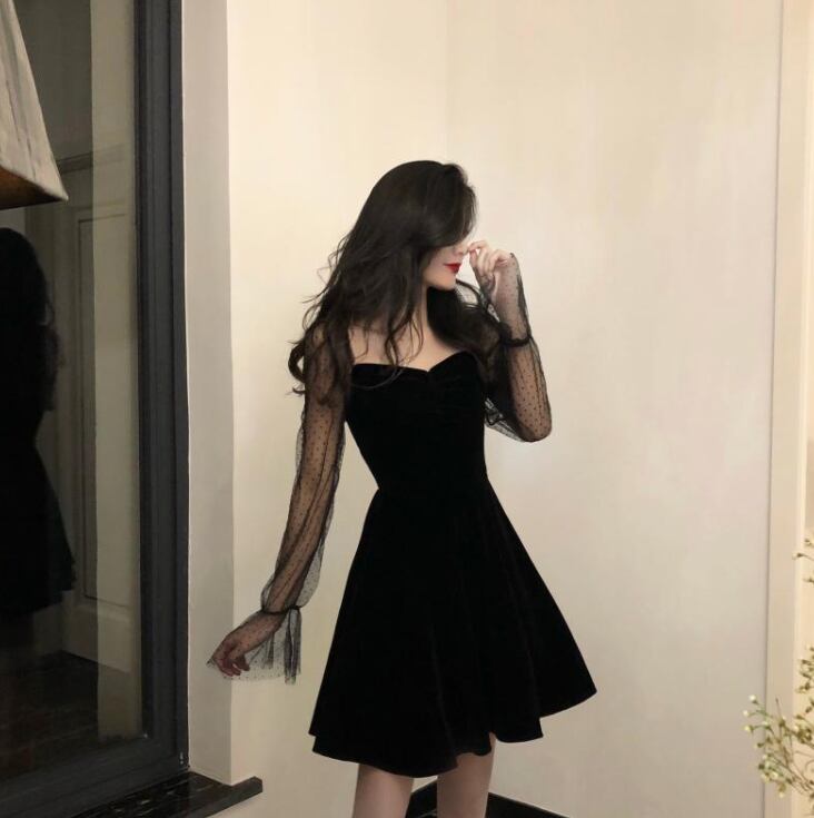 【送料無料】 ワンピース ミニ丈 ドット シースルー フレア セクシー エレガント お呼ばれ デート 二次会 ドレス DR-001NS