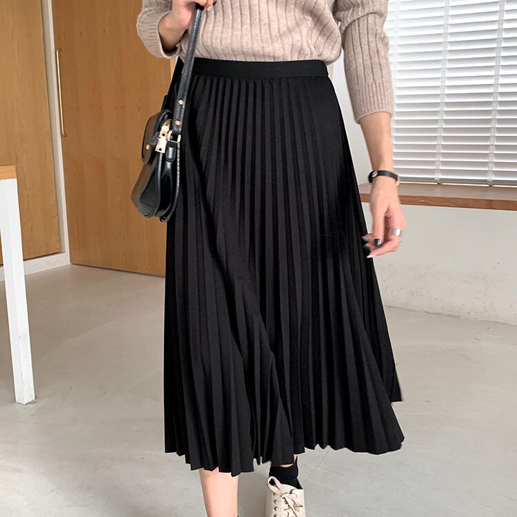 【送料無料】 プリーツスカート プリーツ ハイウエスト 大人 きれいめ シンプル ワンカラー 着回し ブラック グレー デート お出かけ SK-136KJ