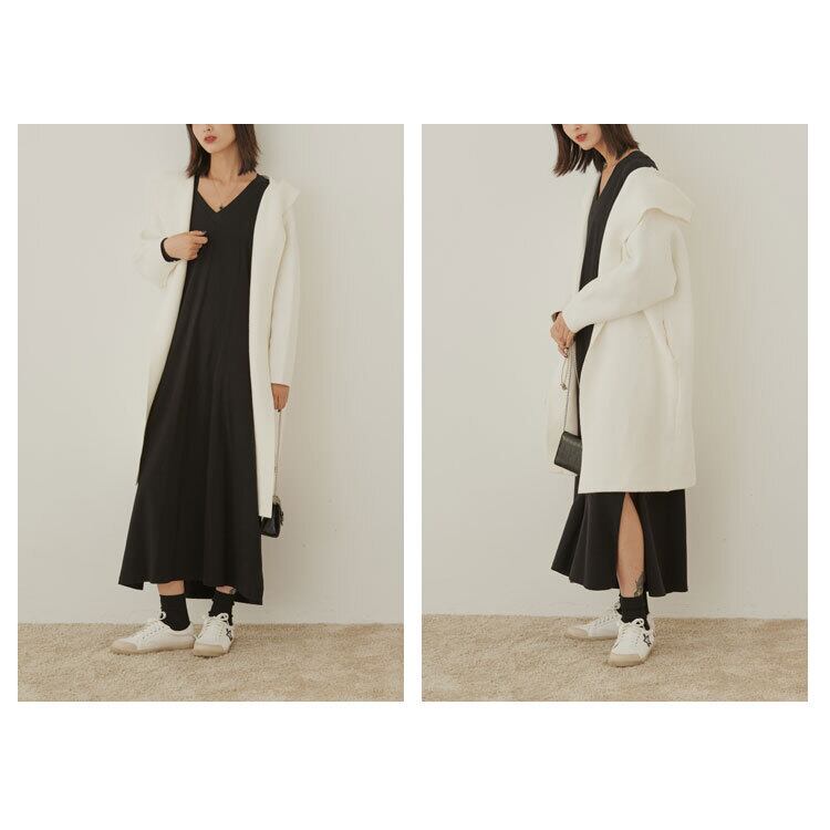 【送料無料】 ワンピース ロングワンピース Vネック ワンカラー ブラック シンプル スリット スタイルアップ 体型カバー 大人 きれいめ カジュアル おしゃれ 着回し マタニティ 女子会 OP-147KJ