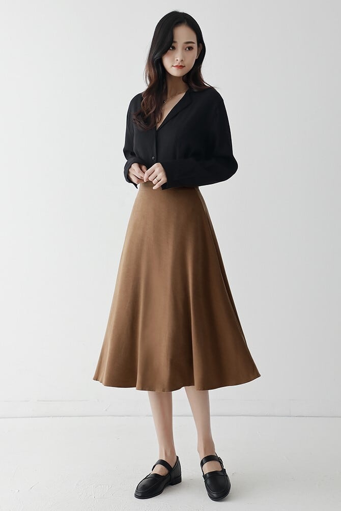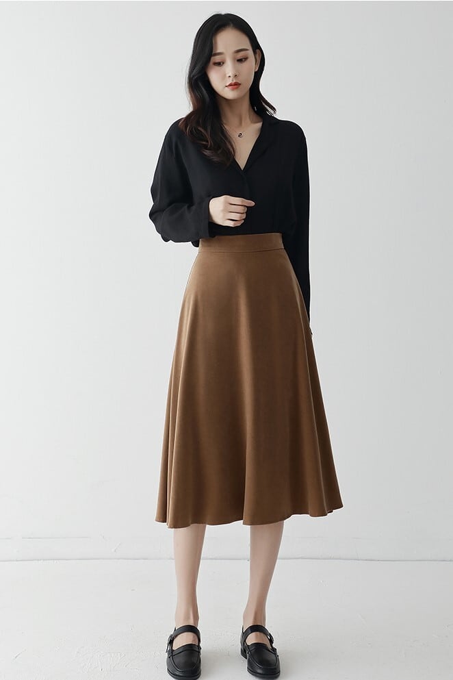 【送料無料】 スカート 膝下スカート フレアスカート Aライン 秋冬 ハイウエスト ロングスカート 大人 きれいめ 上品 エレガント ママコーデ デート オフィス 通勤 SK-154KJ