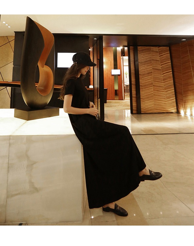 【送料無料】 ワンピース ロングワンピース ロング丈 シンプル モノトーン ワンカラー ブラック 春夏 春服 半袖ワンピース 大人 カジュアル デート マタニティ OP-161KJ
