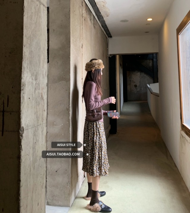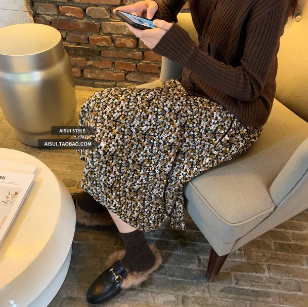 【送料無料】 花柄 スカート ミモレ ミディアム 秋冬 レトロ フレア ガーリー フェミニン トレンド お出かけ デート SK-003NS