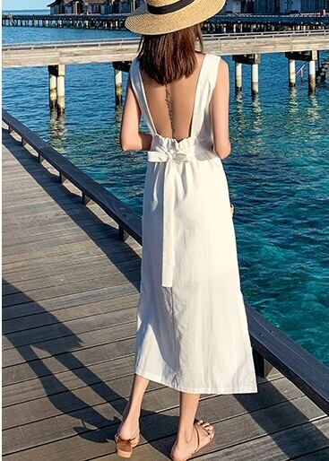 【送料無料】 ワンピース ロングワンピース バックリボン リボンワンピ ロング丈 大人 きれいめ デート 春服 春夏 ホワイト セクシー OP-167KJ