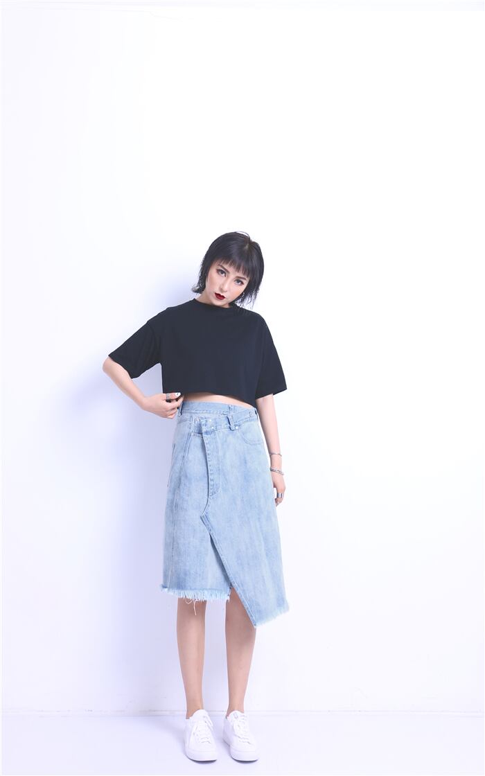 タイトなスカートやデニムと合わせるとストリート系でかわいい♡