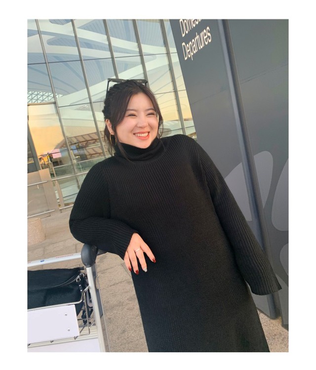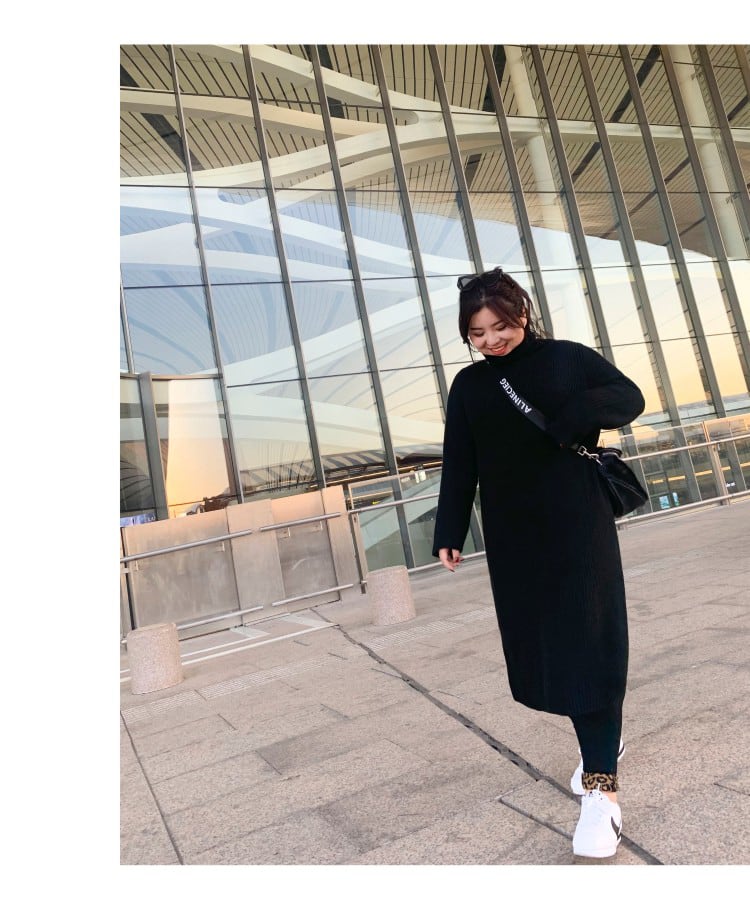 【送料無料】 ニットワンピース ハイネック タートルネック リブニット 厚手ニット スリット ぽっちゃり 大きめサイズ 大きいサイズ 着痩せ 体型カバー マタニティ ブラック ワンカラー 無地 シンプル ニットワンピ OP-181KJ