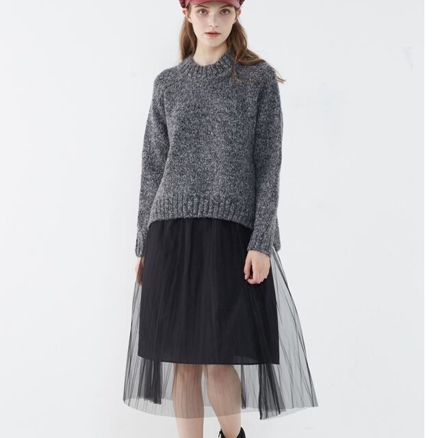 シンプルなセーター+チュールスカートのキャミワンピのセットアップです!