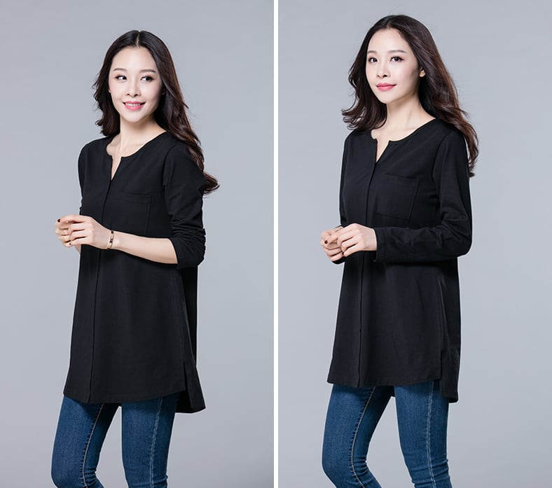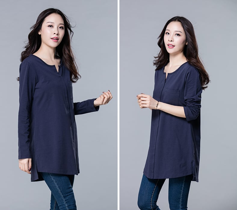 【送料無料】 チャーム胸ポケット付☆ロング長袖Tシャツ コットン 丸首 センターシーム 韓国トレンド 大きめサイズ XL 2XL 3XL 4XL 大人カジュアル オシャレ シンプル ベーシック 無地 春秋 ブラック ヘザーグレー ネイビーブルー 全3色 通勤 通学 レジャー 普段使い シティー デート スポーティー デイリー TP-158KW