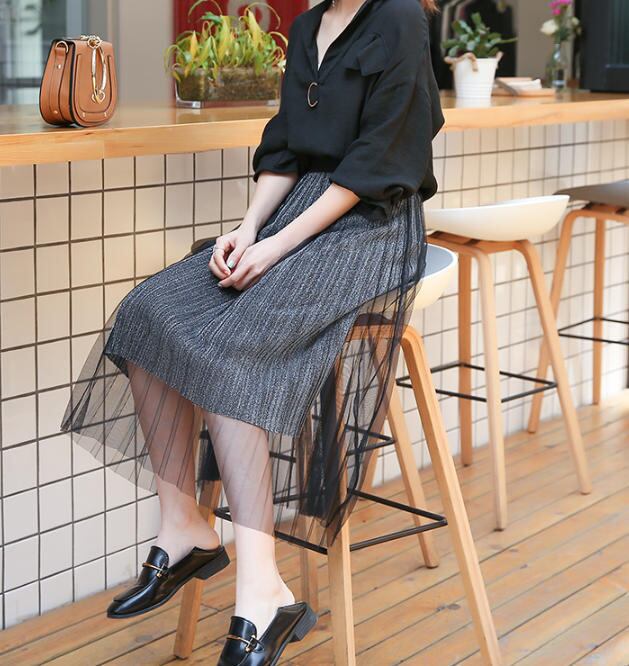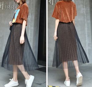 【送料無料】 プリーツスカート チュール シースルー ハイウエスト 上品 ウエストゴム 無地 大人っぽい カジュアル SK-002IU