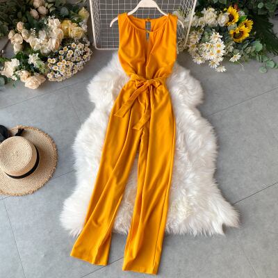 【送料無料】 オールインワン ウエストリボン ハイウエスト 上品 肌見せ セクシー 大人 きれいめ デート 体型カバー 着痩せ 春服 春夏 シンプル AI-190KJ