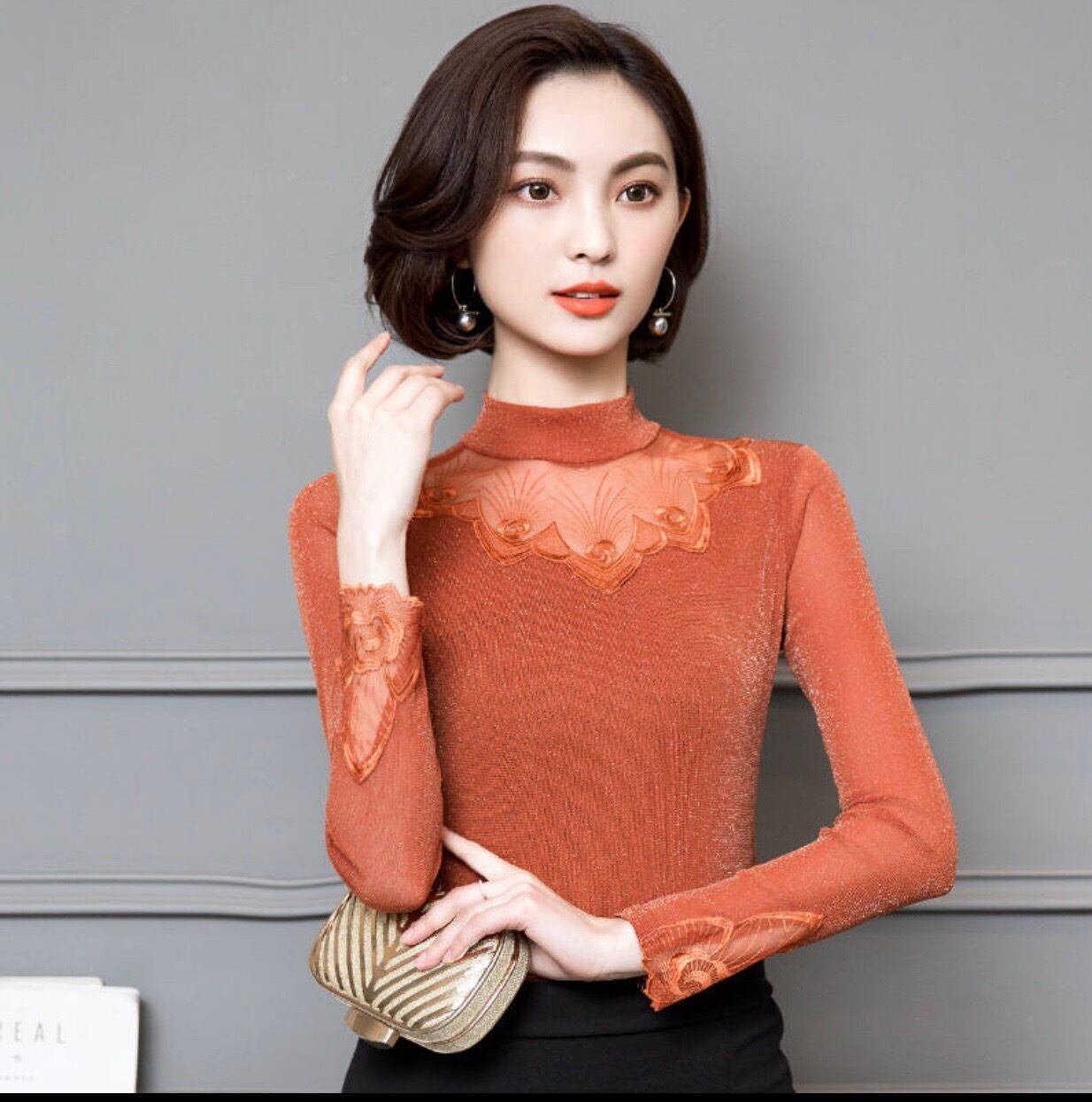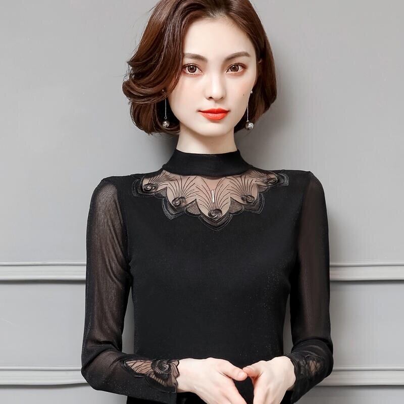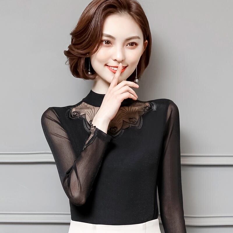 【送料無料】 レース スタンドネックブラウス シアー 長袖 大人 上品 きれいめ 秋冬 レディースファッション シンプル TP-001PS