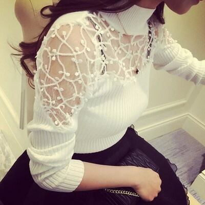 【送料無料】 トップス ニット シースルー レース セクシー 大人可愛い オシャレ カジュアル 長袖 ハイネック フェミニン TP-011AU