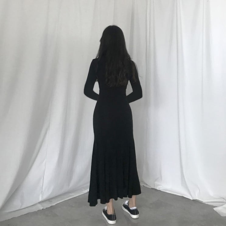 【送料無料】 ドレス ワンピース スリット セクシー 長袖 ロングワンピース ミディアムワンピース シンプル モード ギャル 大人っぽい DR-003AR