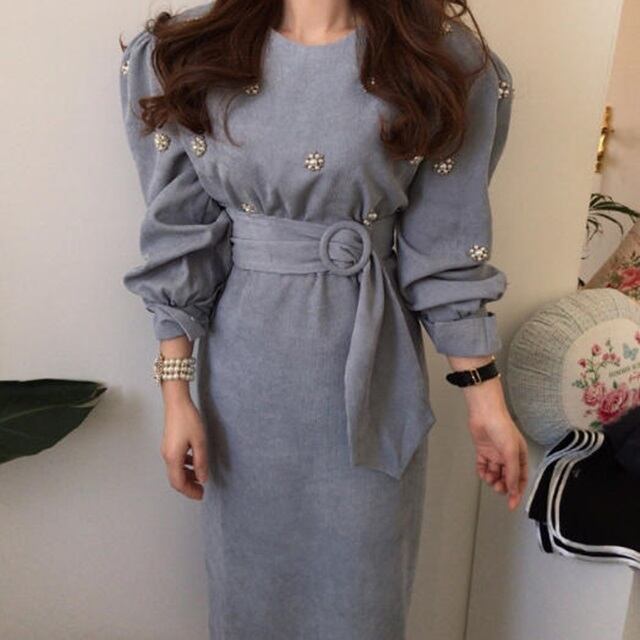 【送料無料】 ワンピース ビジュー 花柄 ロング丈 ベルト ハイウエスト エレガント フェミニン 春 新作 OP-007IU